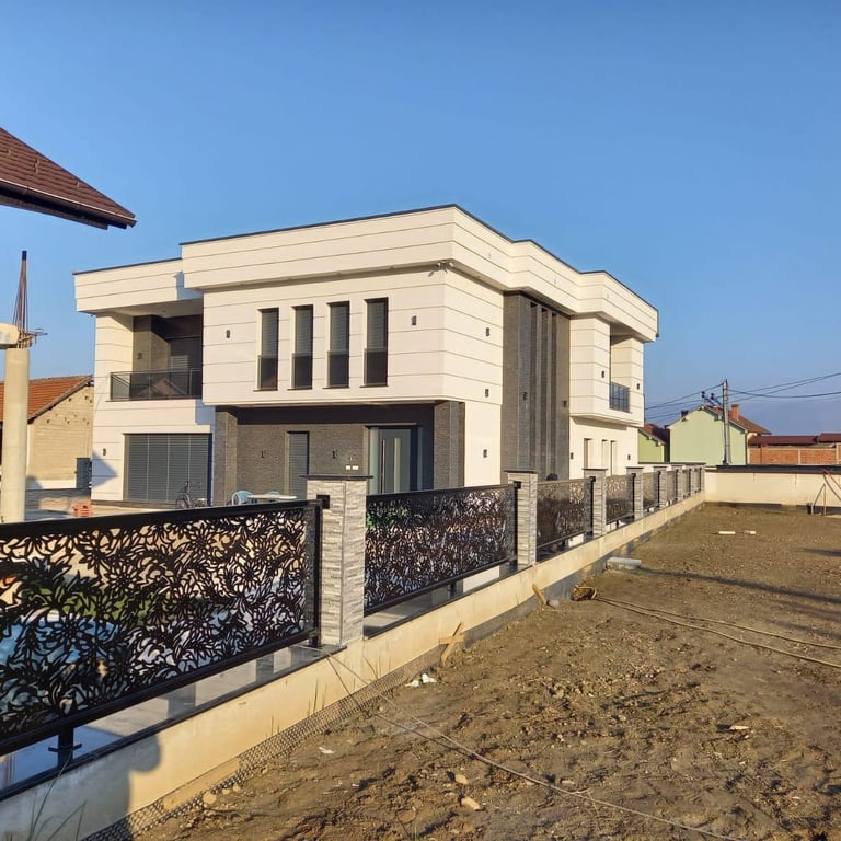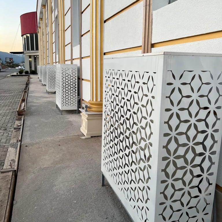 Panele metalike të personalizuara të krijuara për ndërtesa moderne.